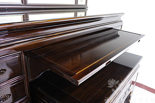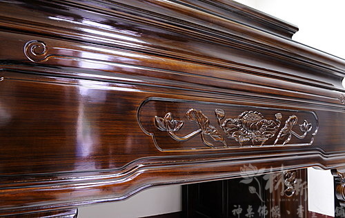 五尺八紫檀木桶桌式神桌,配上的是自在盤坐觀音聯,跟大家分享一下叭!