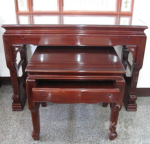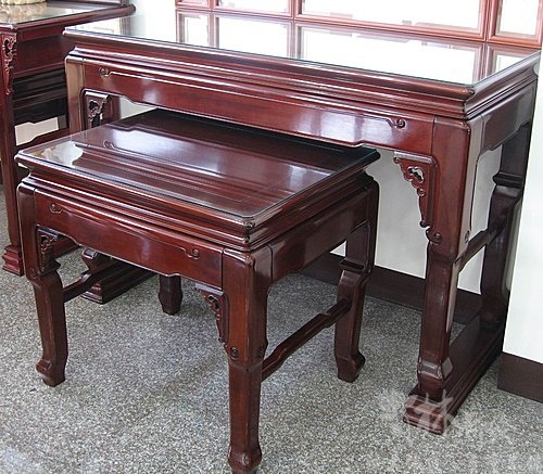 一般漢式神桌都是有很多複雜的刻花,板主家好幾組漢式也都是刻花刻的很漂亮,