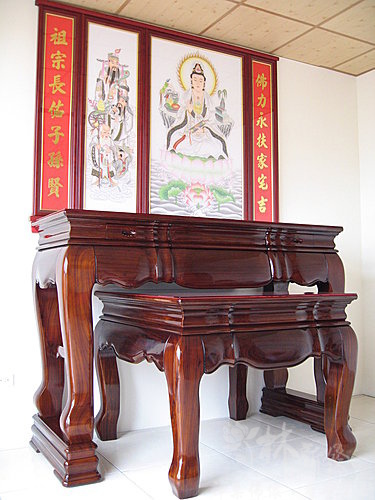 大家安唷^^~~~話說~~有偷看丫倫相簿的人~ 都猜到這幾天會PO這尊咧XD~~ 不要偷看啦!只看照片沒有丫倫啐啐唸不是很無聊叭~呵呵 在分享拖椅的之前~順手附上之前做的一尺六梢楠木跟二尺二梢楠木的給大家唷! 一尺六連椅梢楠木廣澤尊王(郭聖王)~~~ http://tw.myblog.yahoo.com/lin-shinfa/article?mid=7978 二尺二連椅梢楠木廣澤尊王(郭聖王)~~~ http://tw.myblog.yahoo.com/lin-shinfa/article?mid=10611 郭聖王原本姓郭名洪福~ 在民間又叫保安尊王、聖王公等~~~ 其實廣澤尊王的故事應該可以算是眾神佛裡相當有趣的~~~ 當郭聖王當年還是少年時, 曾受一地理師傅傳授其功夫~~ 而後來在有一天郭聖王盤地而坐時, 突然得道神化,那時他才十六歲~~~ 最有趣的地方則是~~ 在我們民間普遍稱呼郭聖王為翹腳聖王(台語), 其源由是因為當郭聖王得道升天時, 郭聖王的母親不捨兒子要離開她, 所以就拉了郭聖王一把, 剛好就是把郭聖王的左腳拉下來~ 這也就是為什麼我會後世雕刻神尊是郭聖王都是左腳在下的原因囉! 再來先特寫丫倫特別製做的拖椅唷!很精細叭^^~話說獅子也是可以拿起來的啦XD 廣澤尊王就是那種威嚴中又帶點可愛的fu厚~沒辦法~當年他才十六歲囉! 這組拖椅相信大家都很喜歡叭~ 呵~因為工很細~所以...超難做的啦XDXD~ 請大家別一直叫我做拖椅咧~這個要量產有點難度~~太厚工了丫~~ 當然~金身的雕刻跟法相更是重要唷!雖然是童子法相~~ 不過其莊嚴感還是一定要展現出來~才能完成~"神像雕刻藝術之傳承" 突然很想講這句話~呵呵 法相特寫^^ 金身錦雕特寫^^ 話說~~對不起大家~丫倫變成"富堅"了 哈哈~~林小品傑的七個月特集目前作者外出取材~ 這兩天一定會補上來的啦! 請大家再忍耐一下厚~~~丫倫會努力的