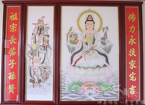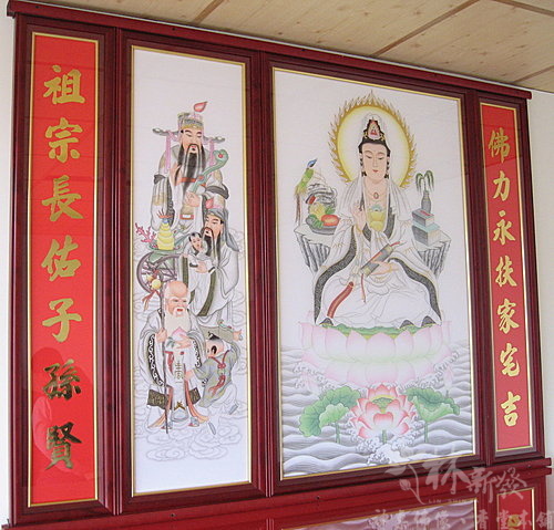 神桌-五尺八紫檀-大腳拉米神桌+彩繪觀音聯