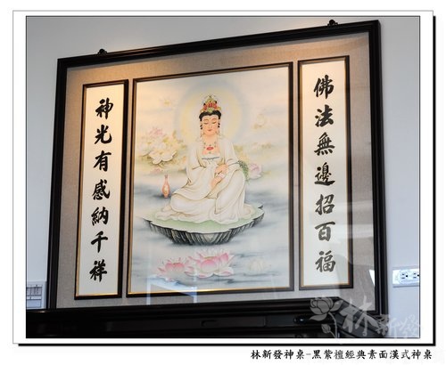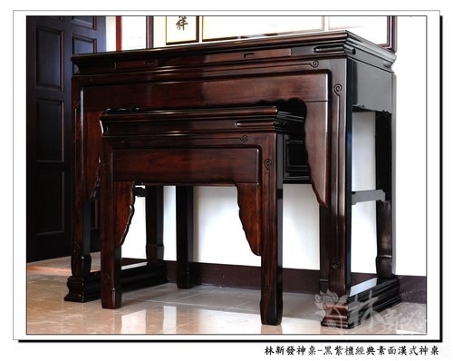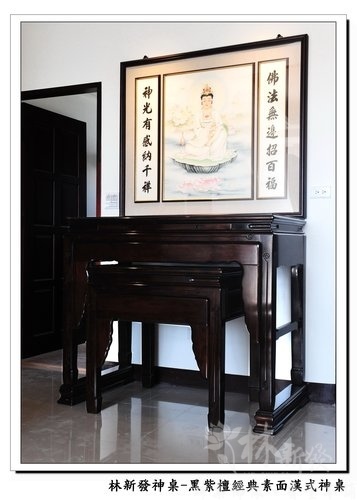 林新發神桌-黑紫檀木經典素面漢式神桌(手繪磐石觀音神聯)