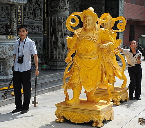 現在因為要移到二樓三寶殿,所以廟的鍾師傅就決定把護法重新按金整修~~現在看到的是打好按金前底漆的樣子