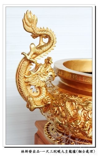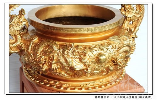 林新發出品-一尺三脫臘九龍皇龍爐(翻金處理)