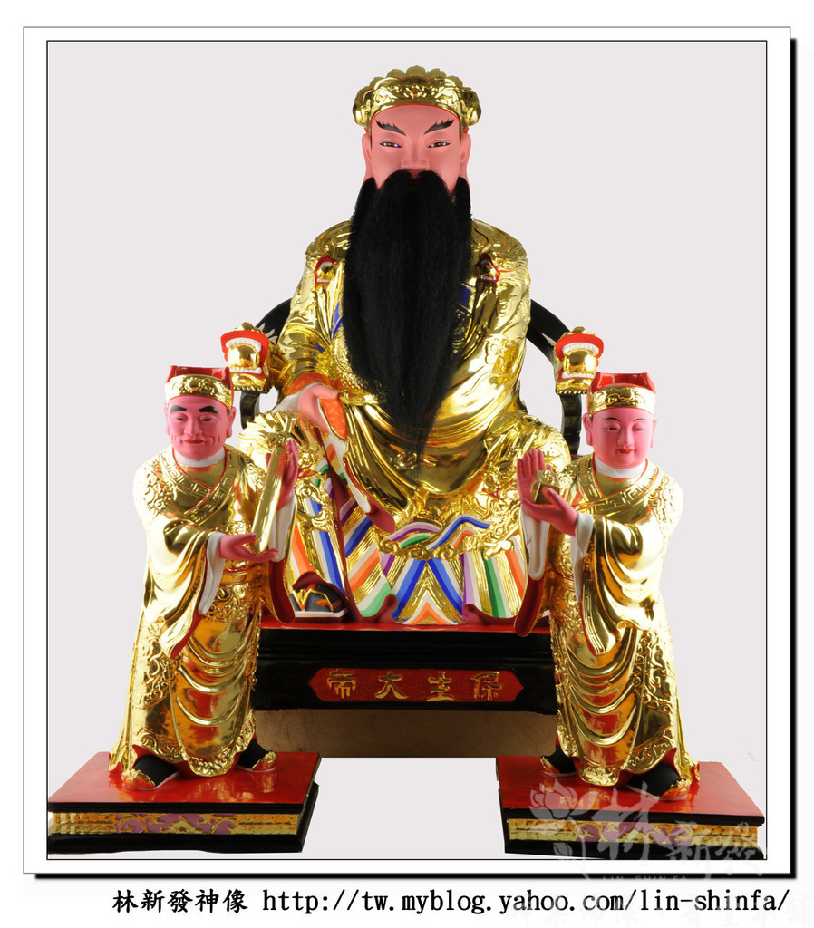 中間的保生大帝是二尺二的喔!前面則是有一尺三的劍印護法