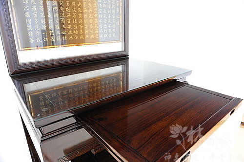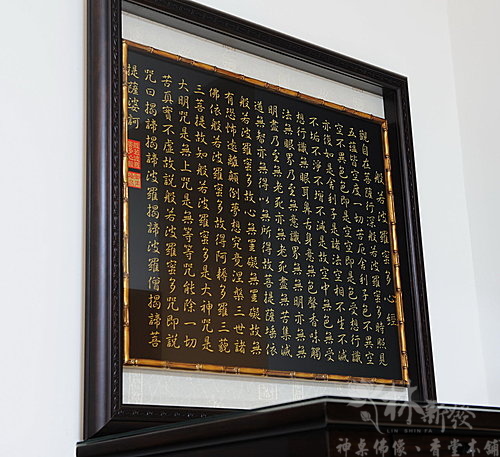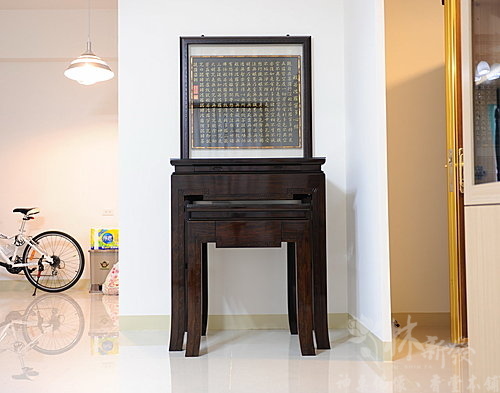 現代居家佛堂-二尺九黑紫檀-彎腳禪風神桌+銅版心經聯