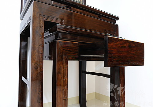 抽屜、抽板裡也都是百分百黑紫檀木,這就是林新發的保證~