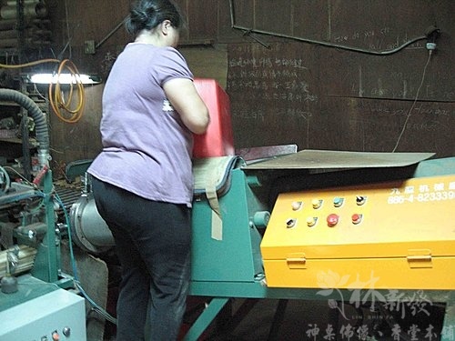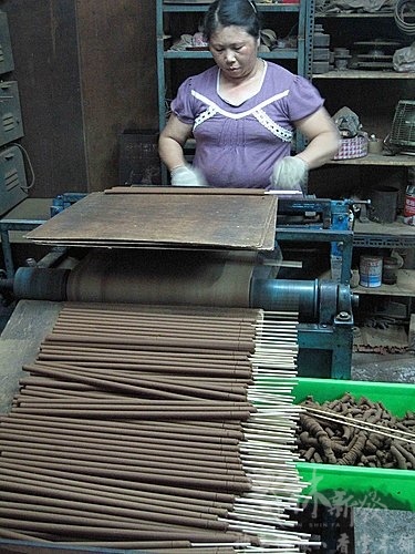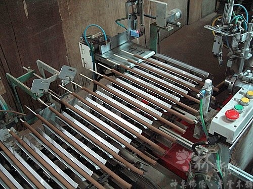 就會用到下面第二台製香機,這裡需要手工把香一支一支放精準!