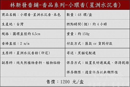 星洲沉環香:1,200元            頂星洲沉香:2,000元