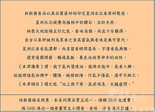 【林新發香堂本鋪。良心   做香   誠心   敬奉】
