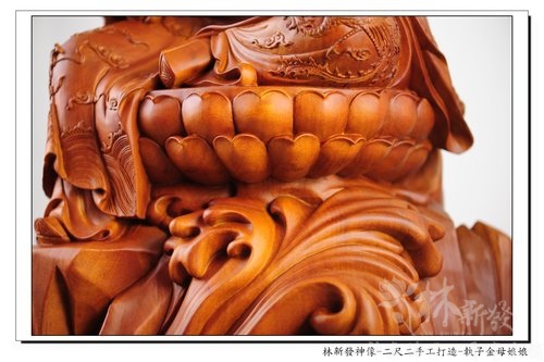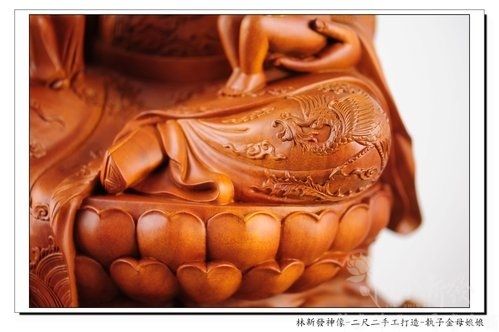 林新發神像作品-二尺二樟木原木色-執子金母娘娘