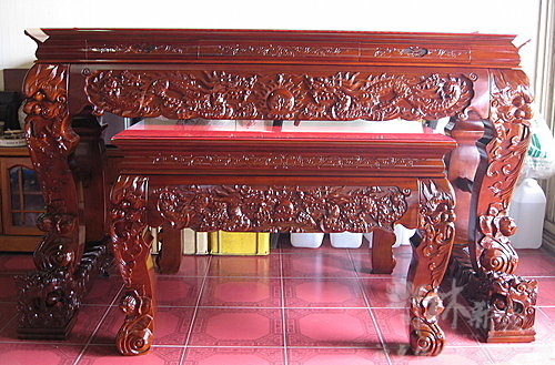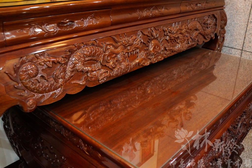 神桌-雙龍拱護/飛鳳呈祥-手工錦雕神桌