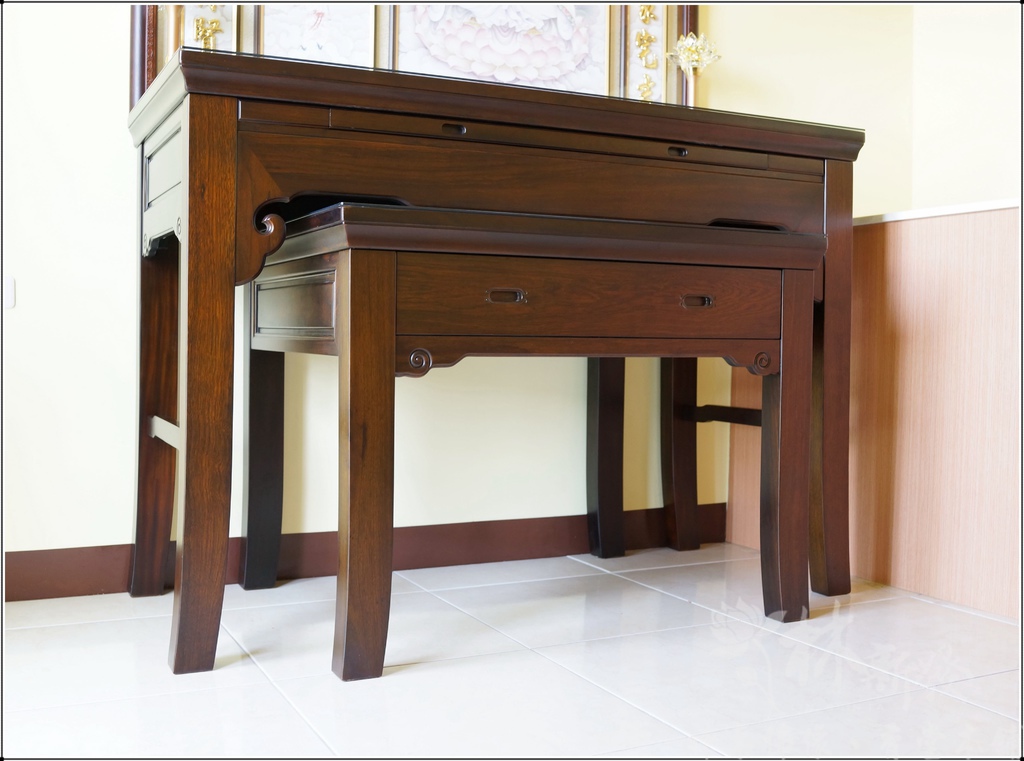 神桌兩旁還搭配了一整套的香櫃,一樣是黑紫檀全實木霧面生漆的作品