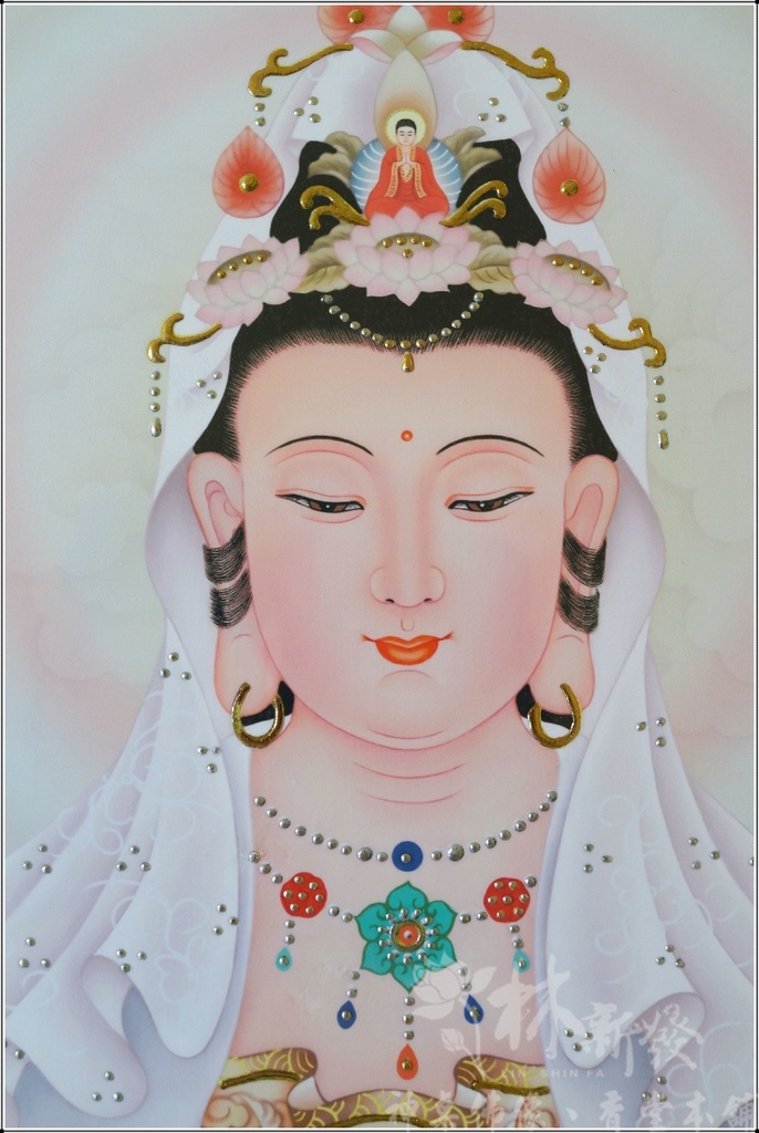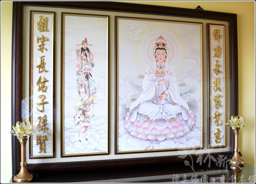另一套居家佛堂搭配了素雅的手繪紫雲觀音神彩,不同的風格,這裡同時給大家欣賞。
