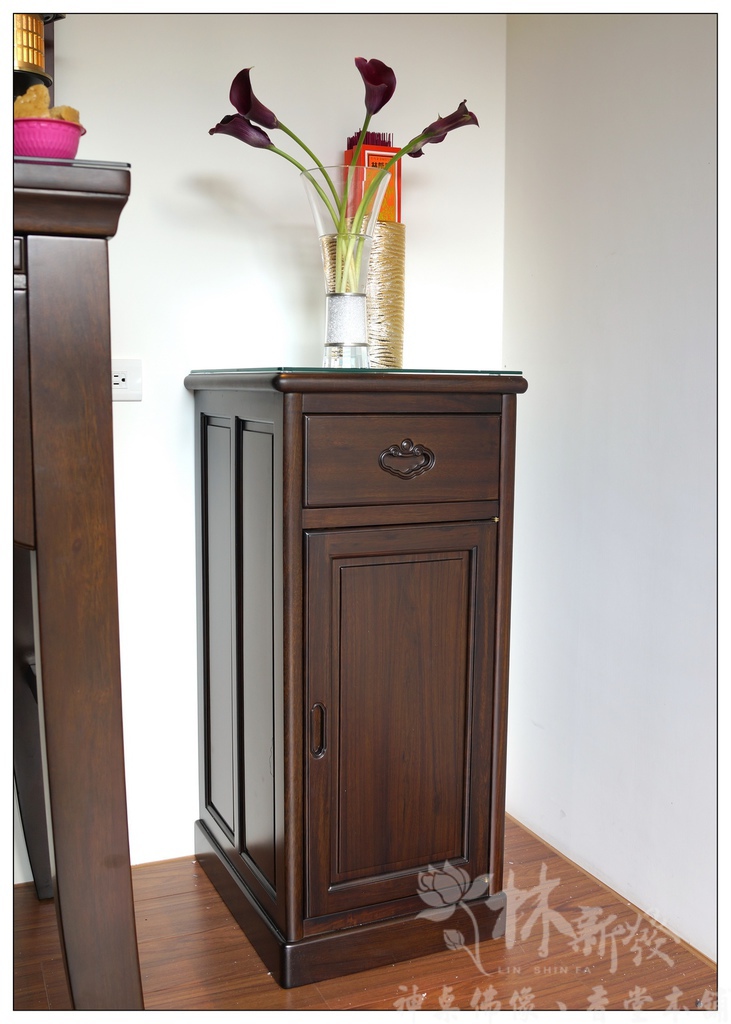 神桌兩旁還搭配了一整套的香櫃,一樣是黑紫檀全實木霧面生漆的作品