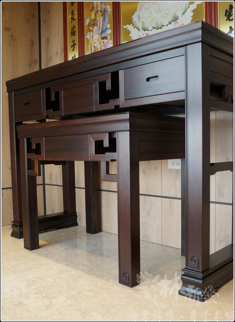 佛堂設計藝術-直腳禪風神桌(台灣手工-純正印尼黑檀木)