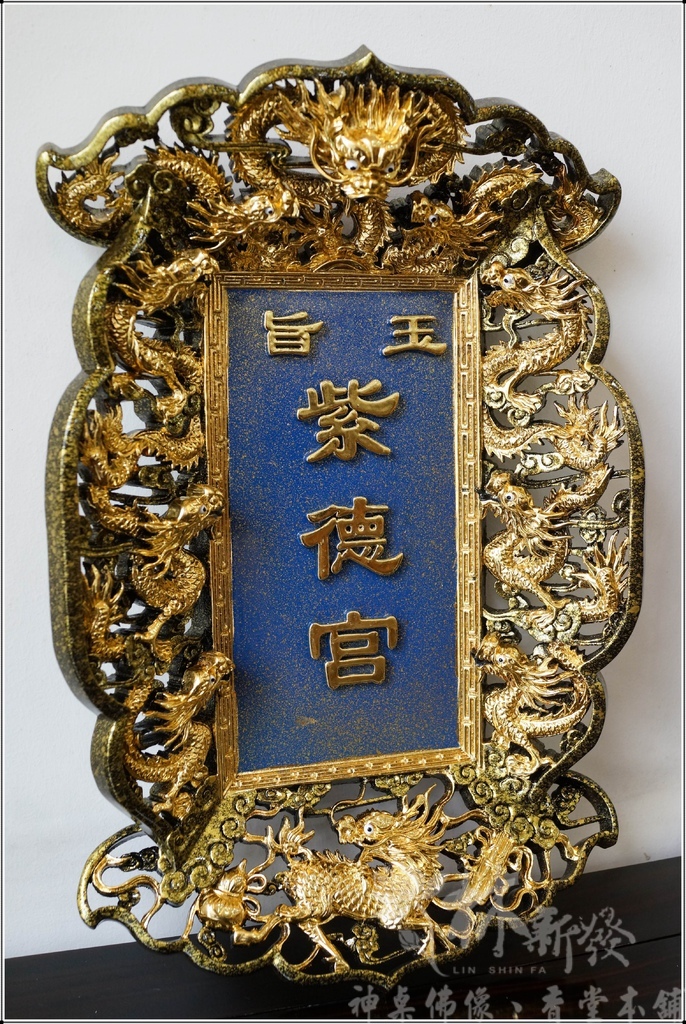 九龍佛道立牌/九龍麒麟宮旨(一尺六/二尺二)金沙彩-宮匾玉旨藝術