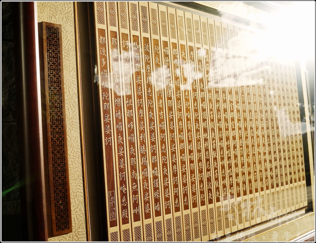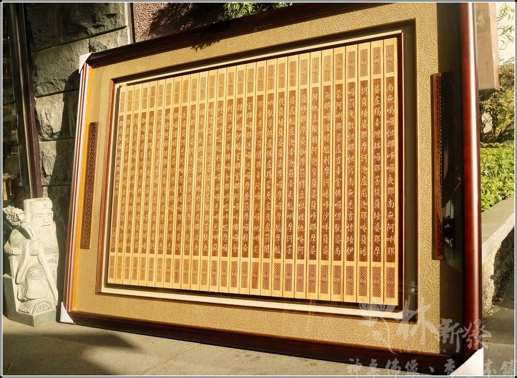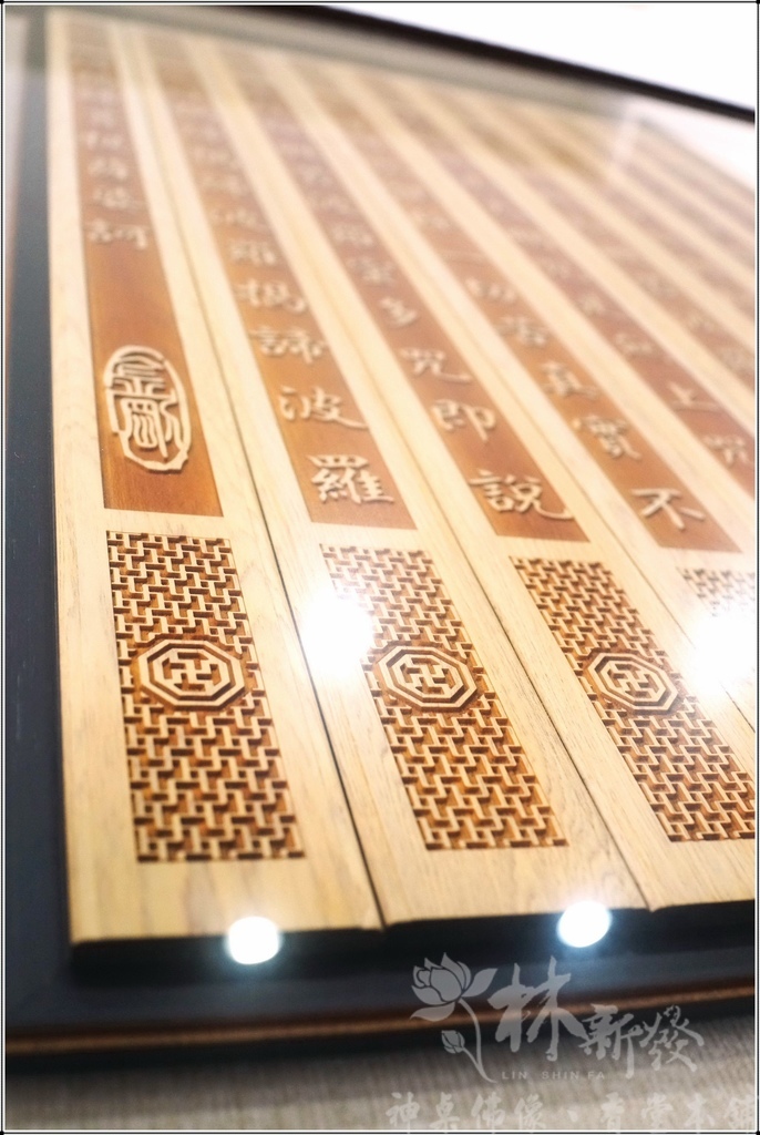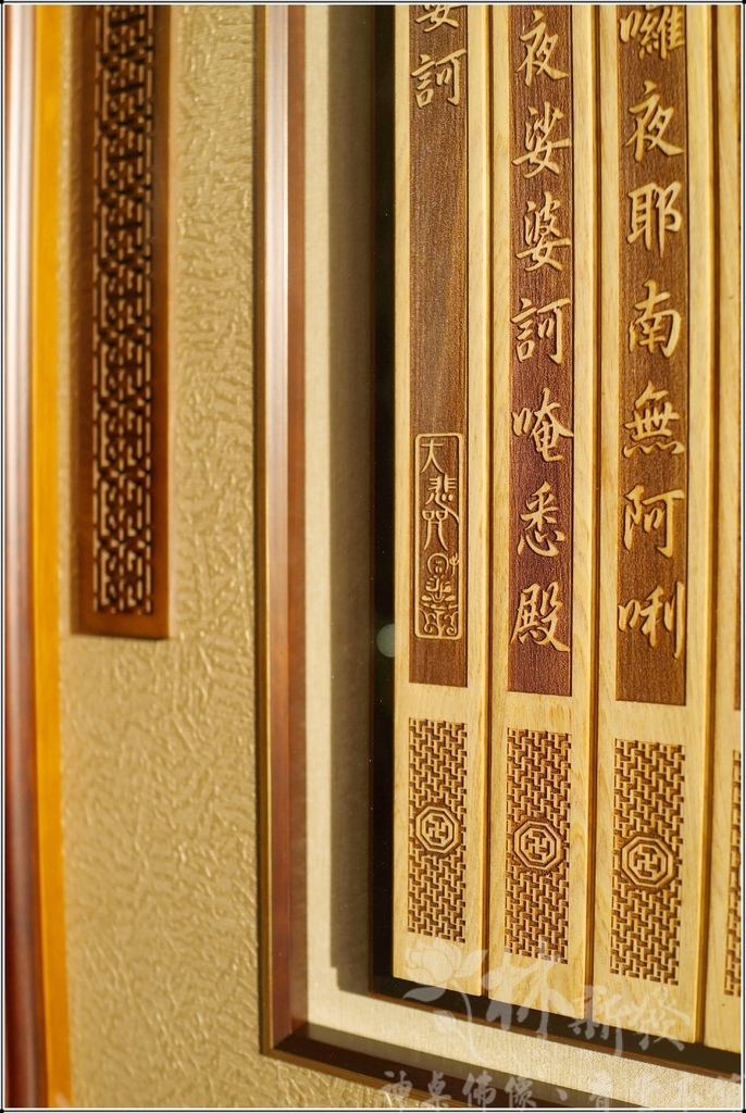 心經/大悲咒/清淨經等經文,都是適合現代佛堂或居家裝璜使用的藝術品。以特等檜木選材陽雕,台灣手工雙層立體表框。