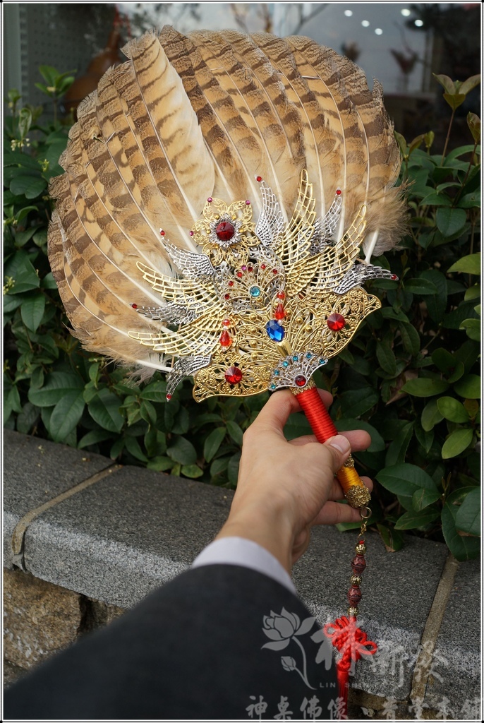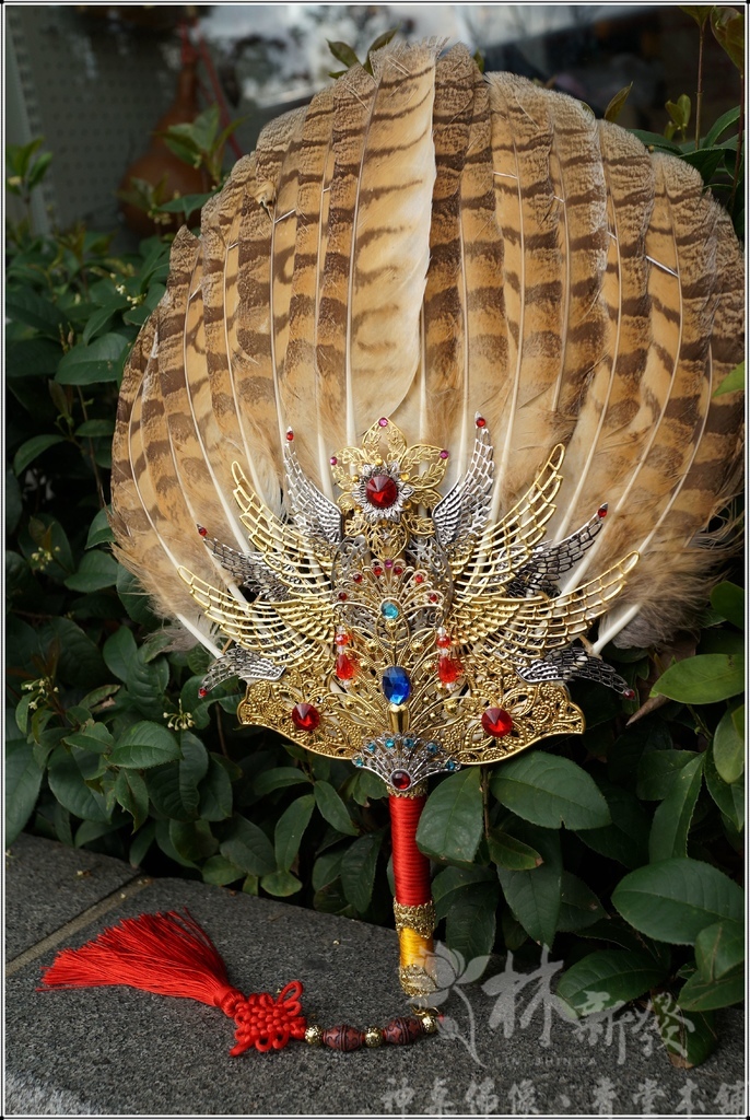 林新發手工柳絲作品-禪師法扇(天然鳥羽毛)