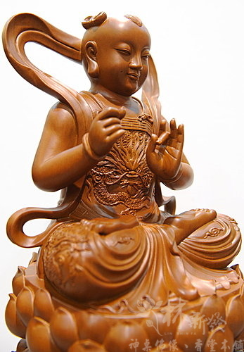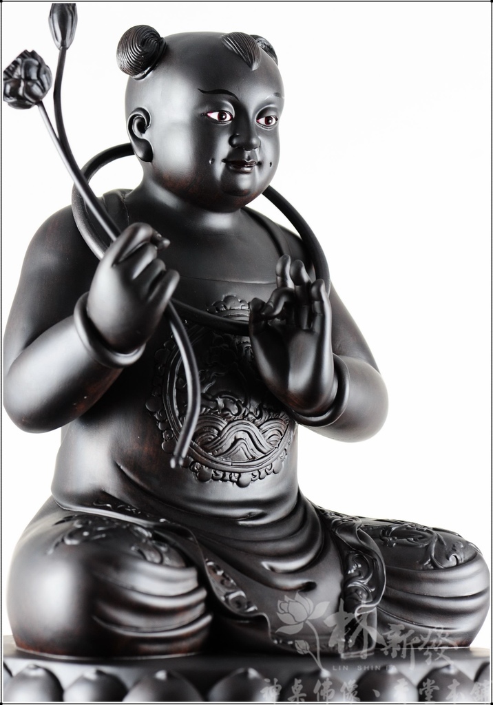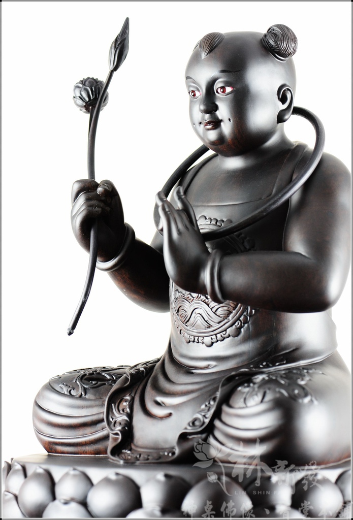 再來下面這尊是黑檀的客製蓮花小太子喔!大概是五年前完成的作品,今天一起來分享給大家欣賞