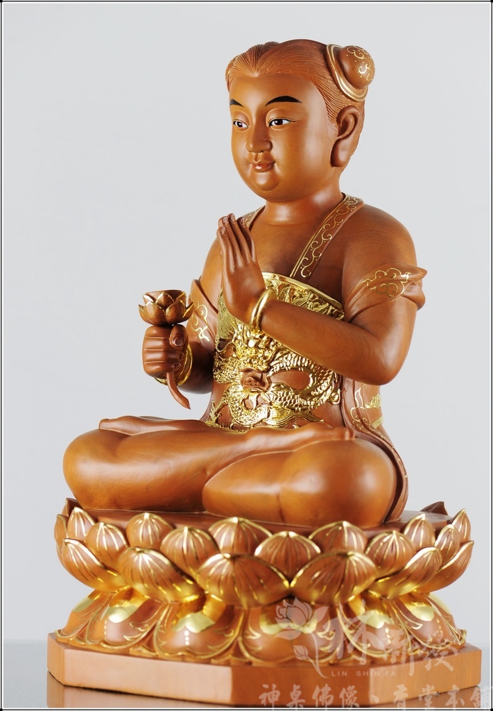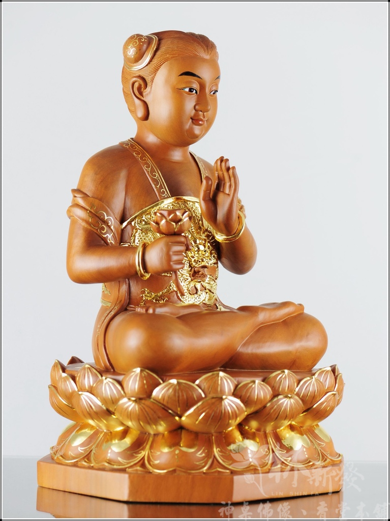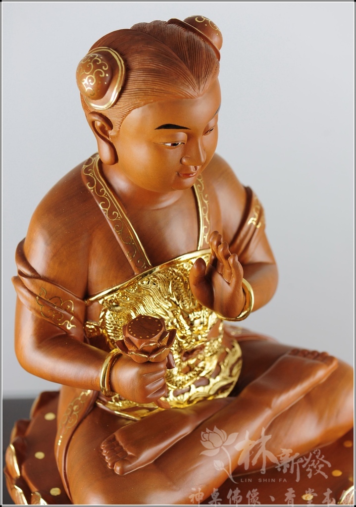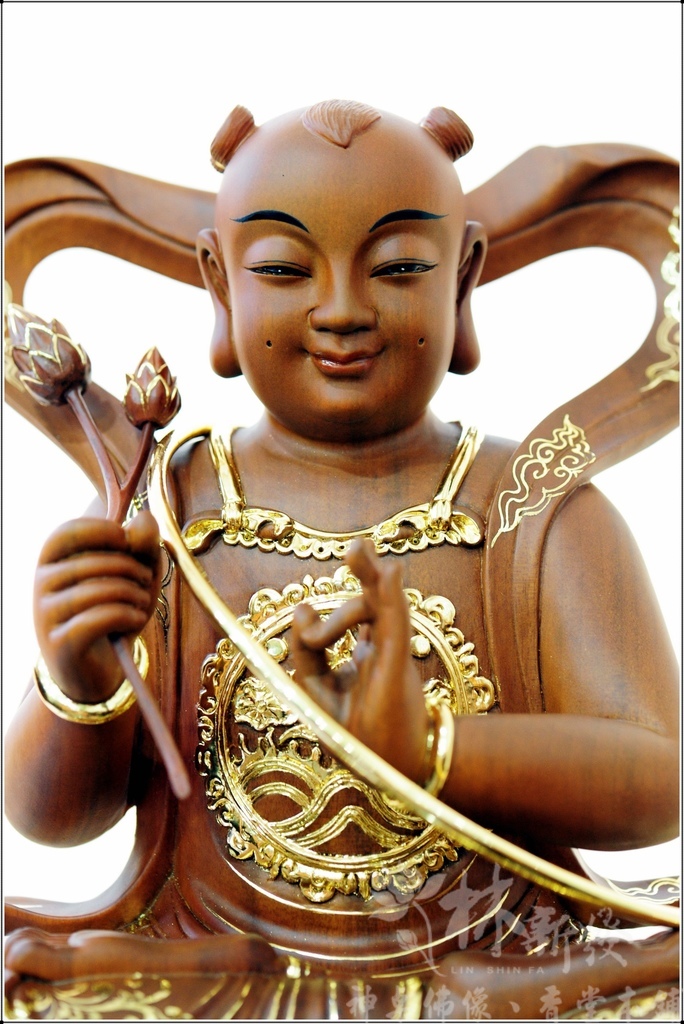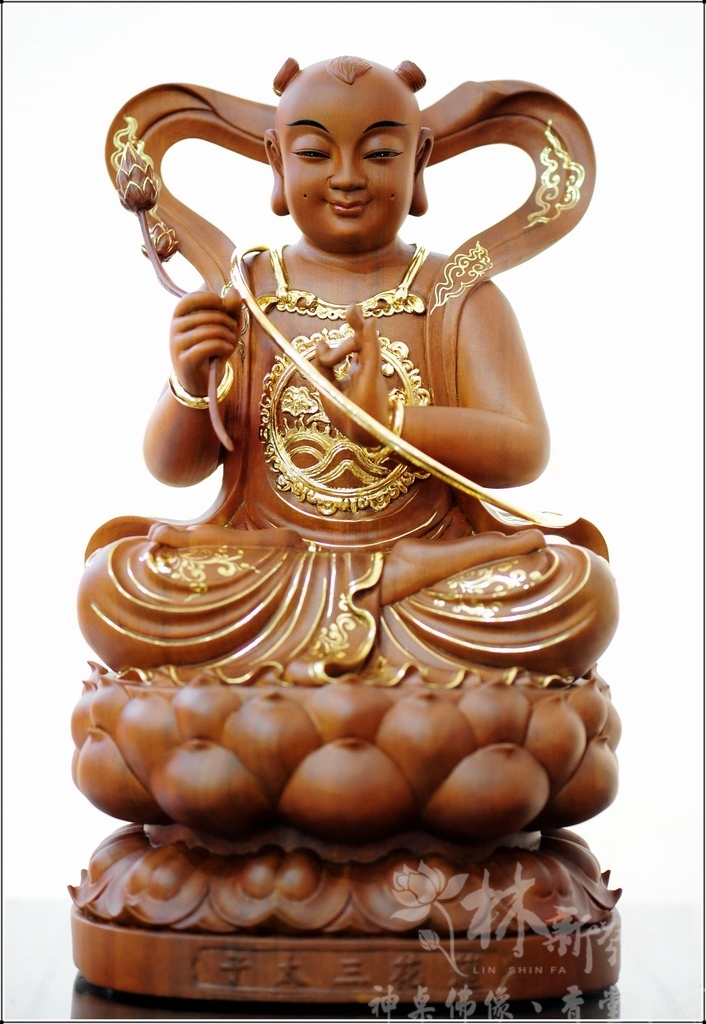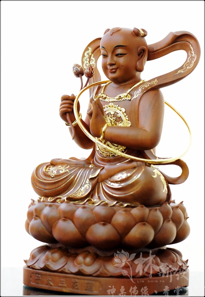 尺三蓮花太子作品,有做過幾種不同的體態,作品錦花細緻,每一件都有其獨一無二的蓮花太子神韻喔!
