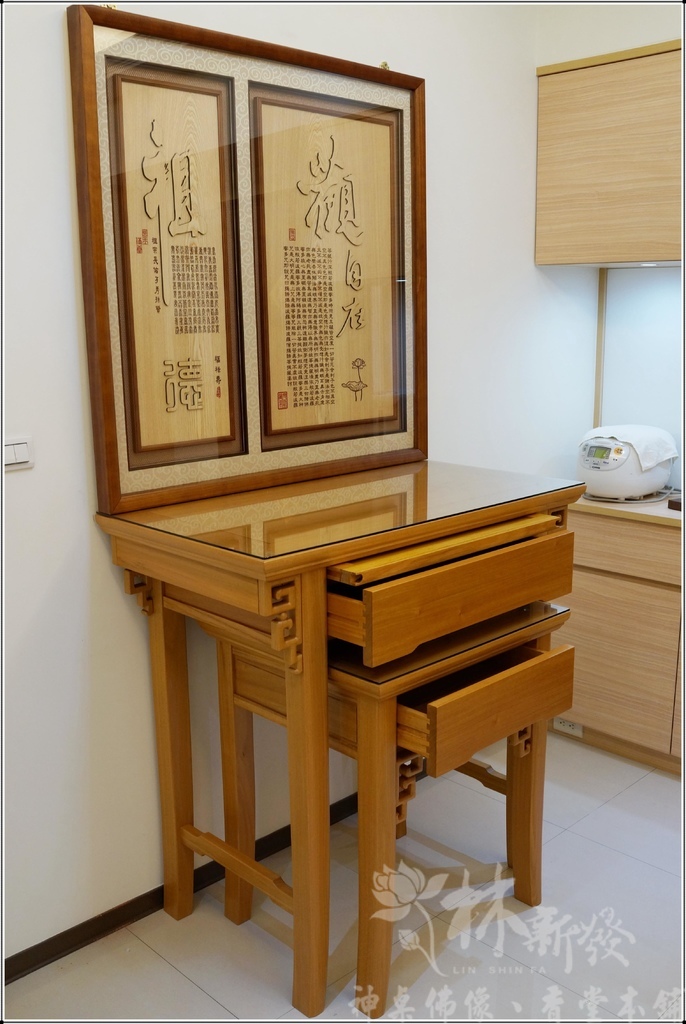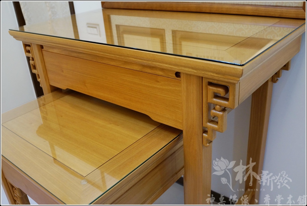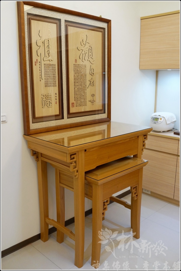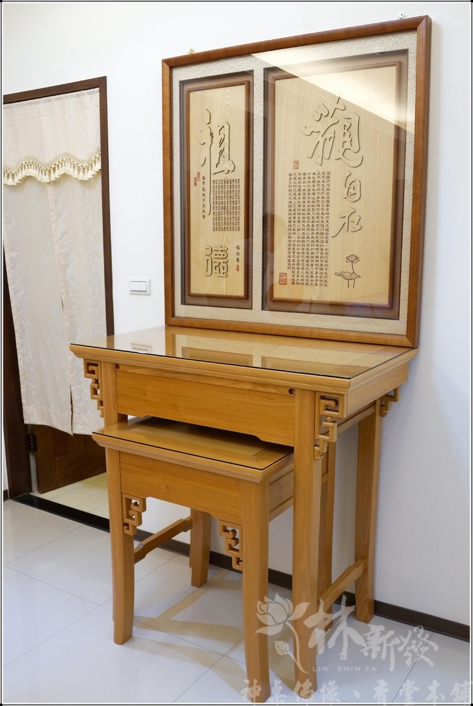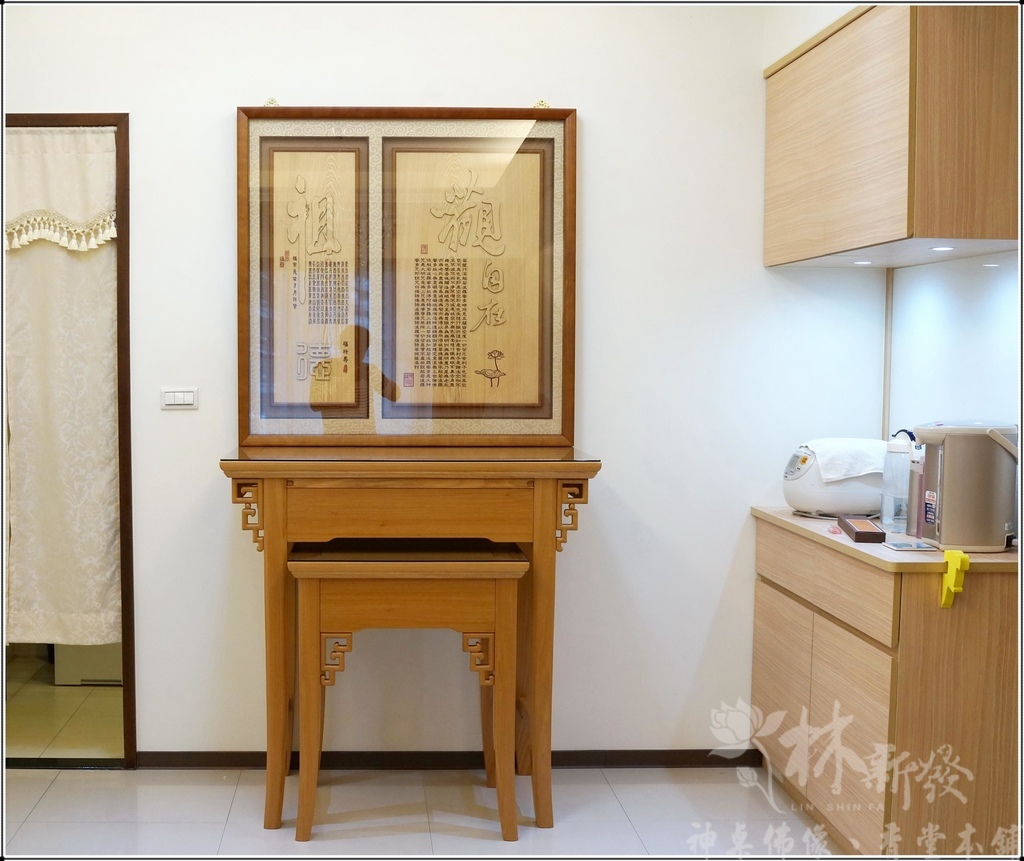 新發神桌獨創的騰達如意三尺六禪風神桌~近代大家對這種簡單素雅高尚的佛堂藝術氛圍很喜愛