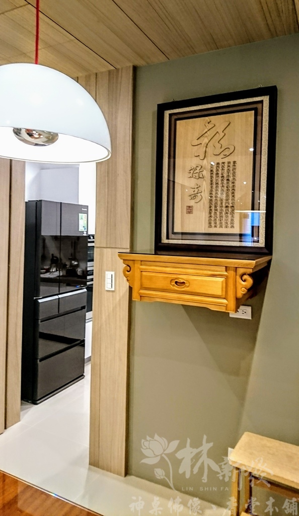 新發神藝-吊掛式半櫥佛堂(福祿壽雕刻聯)-現代居家藝術佛堂
