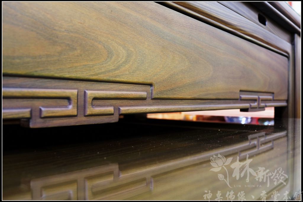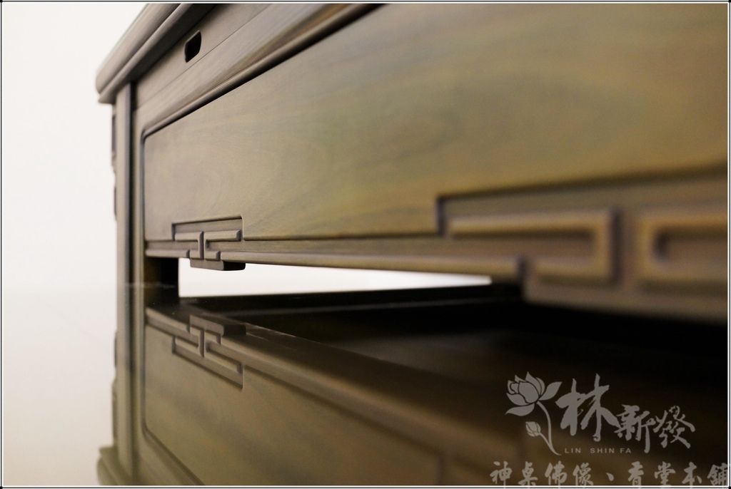 就連平常看不到的細節,我們也堅持用百分百綠檀全實木製做,真材實料的品質才是我們林新發神桌所追求的唯一。