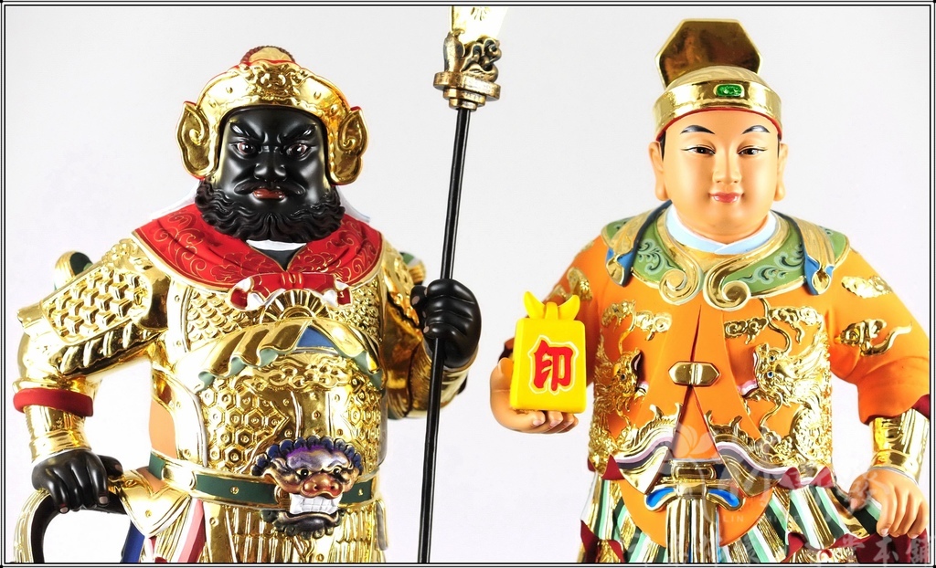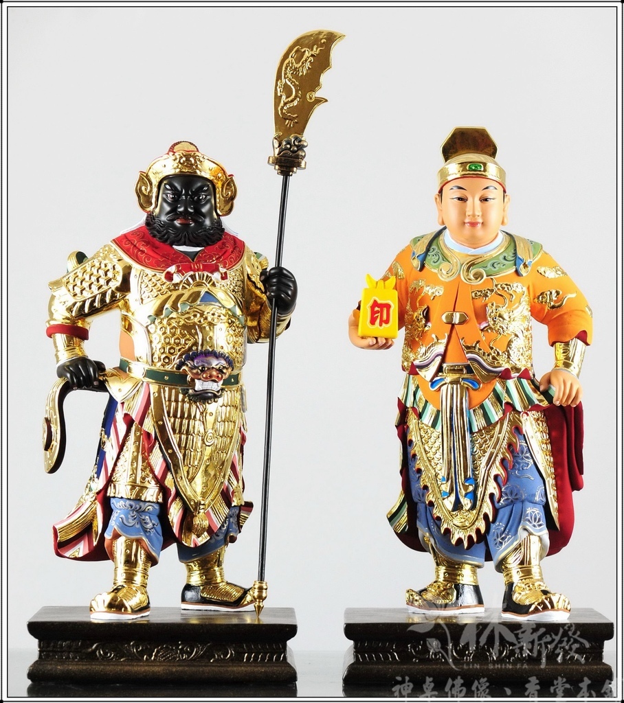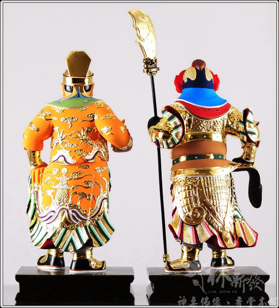 倫師款南式風格彩繪周將軍作品,這對是大家熟悉的關聖帝君護法神,周倉、關平