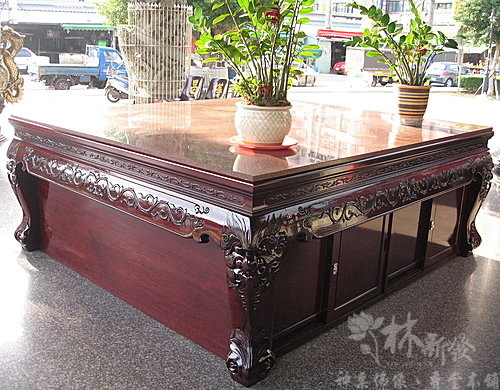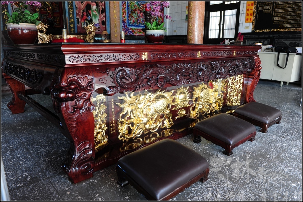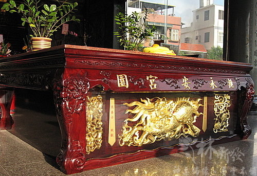 宮廟神桌-花梨木+紅寶石桌面-麒麟八寶特大供桌