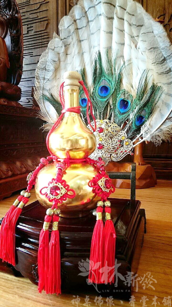 手工法扇還有台灣手工的貼金金箔葫蘆~,都是神明要求的客製化作品喔!法扇羽毛到把手的長度~神明一定要40.5公分,沒看錯!