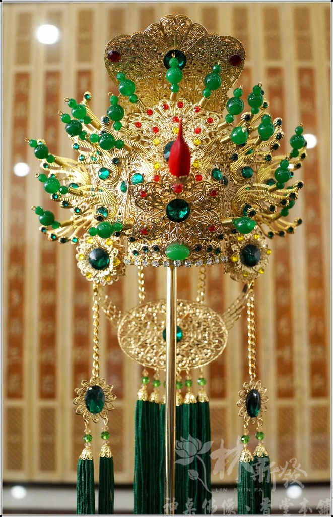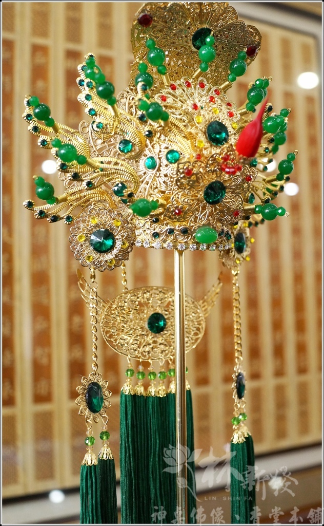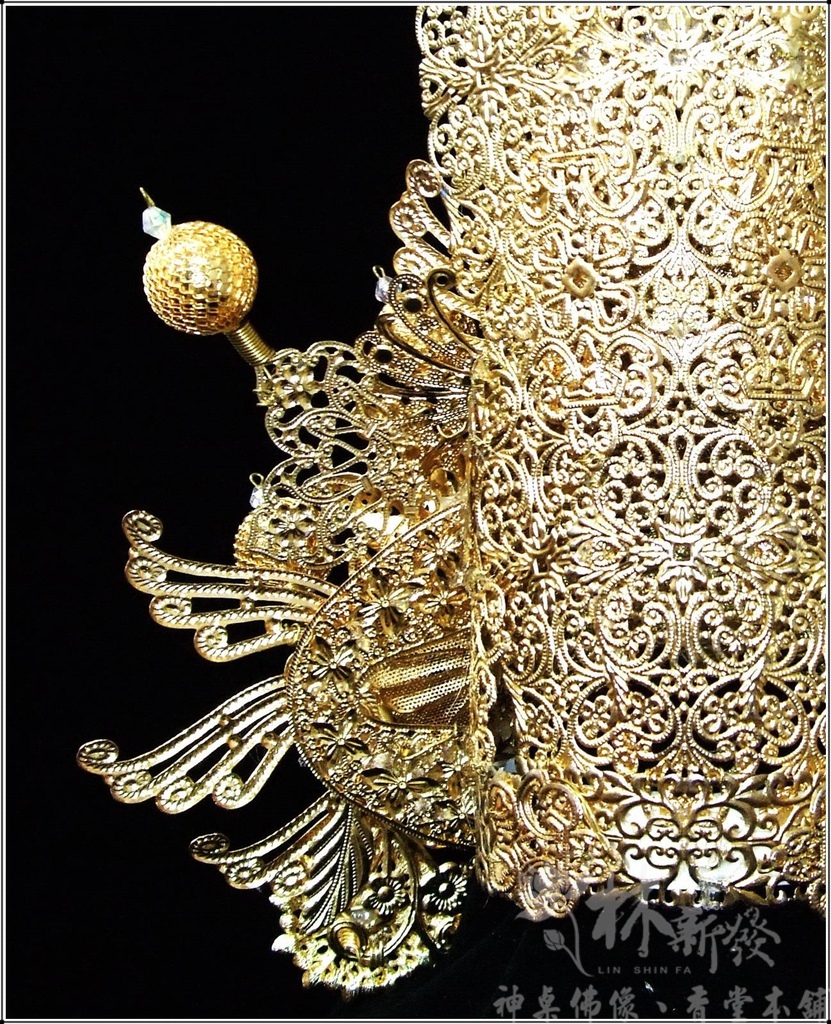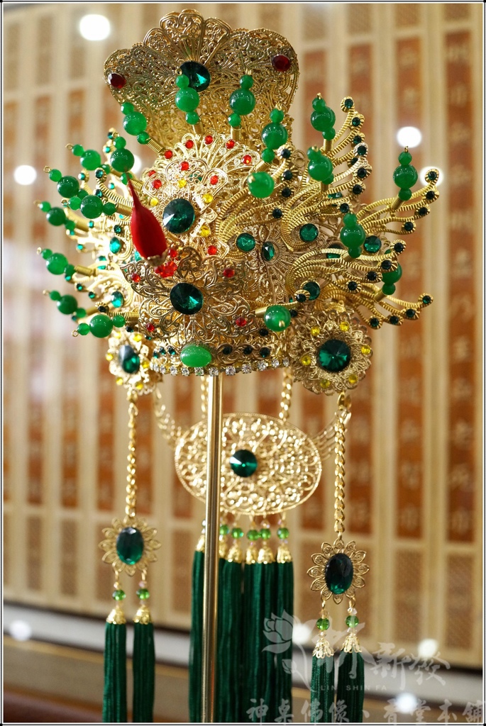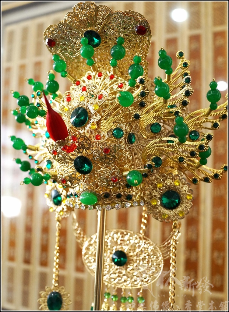手工帝君神帽作品,林新發神帽傳承了古典款式並加入了最新的玉串/水鑽等元素創做出最高質感獨一無二的神帽作品