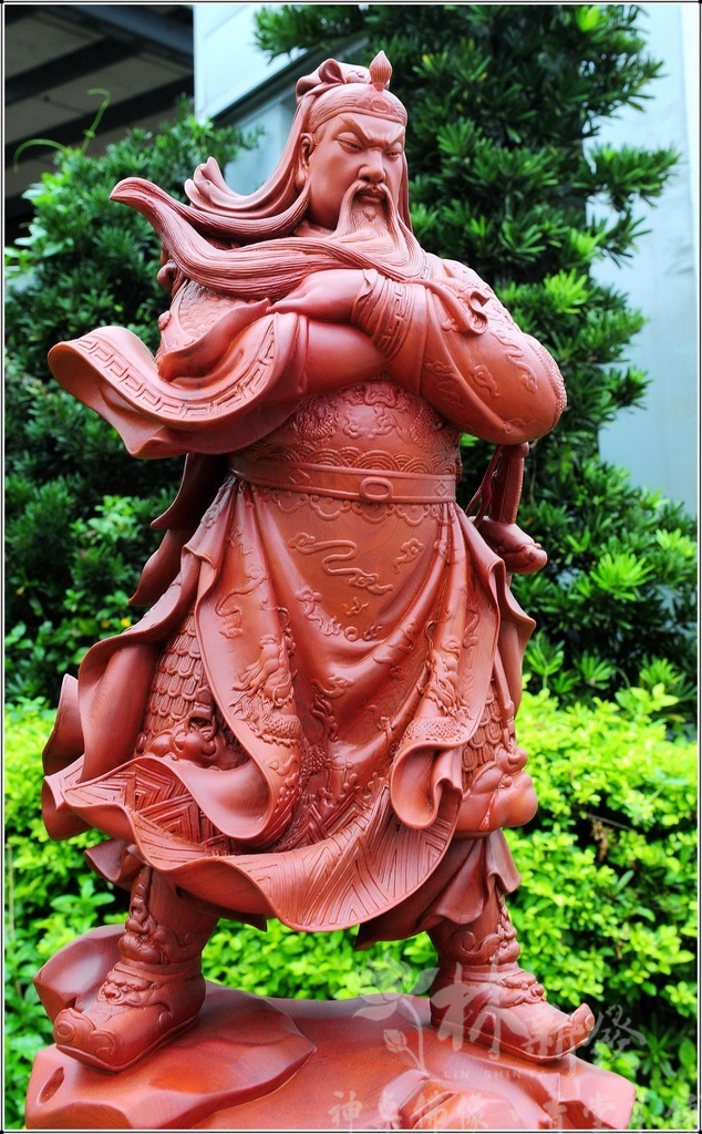 特選的木料,當然就要用最好的雕工來呈現,紅豆杉天然成色的紅色系,更讓帝君的韻味與立體感更勝其它材質喔!