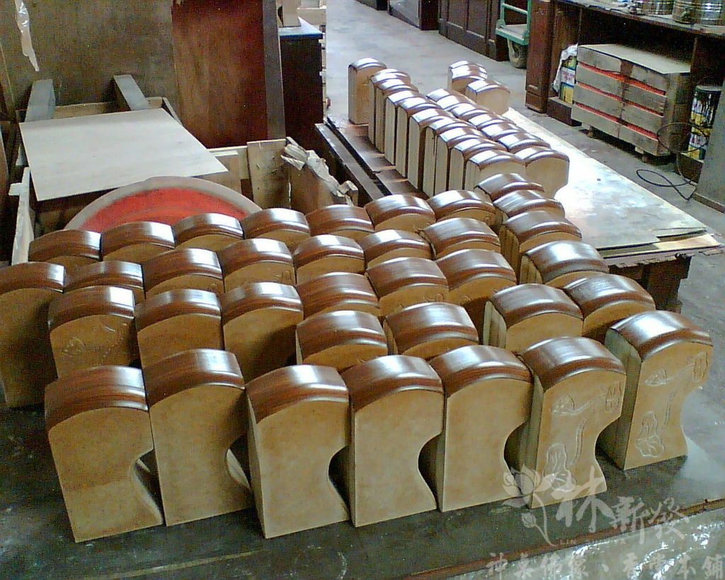 一開始在做神桌前先準備好的各個零件及材料,有一些是半成品,大部份都是像下圖一樣一片一片的板子