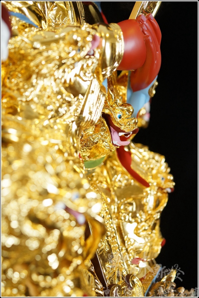 改成了朝天體,想當然丫倫也不會做成傳統的青龍袍,而是直接跳上去做成全金金龍袍喔