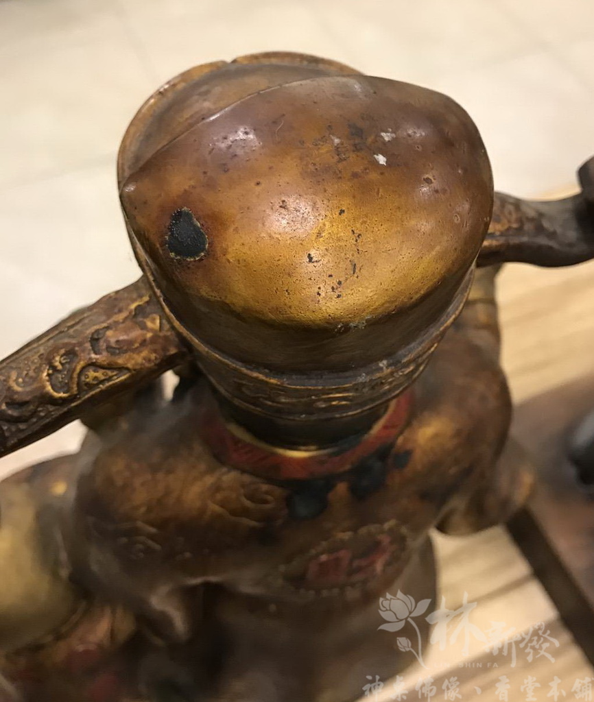 銅雕作品經歷了歲月痕跡,銅質養化總會變的有斑點跟暗沉~其實很多銅神像體態比例跟細節都是很美的,