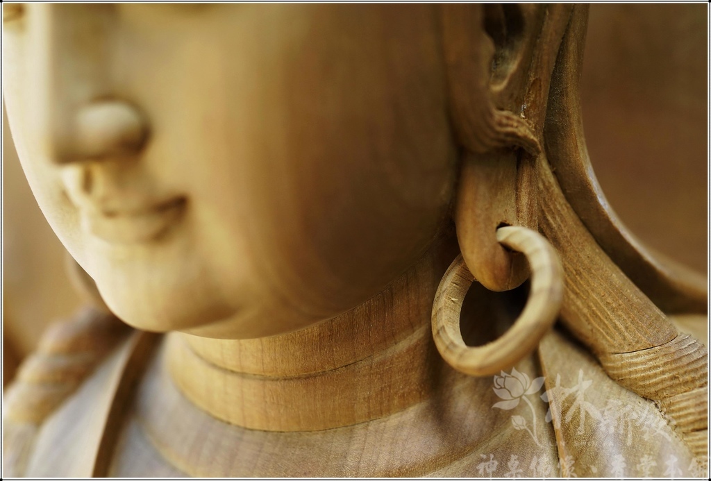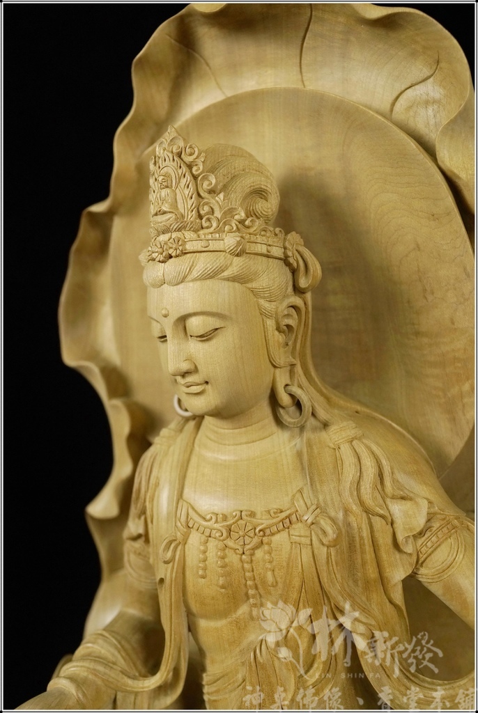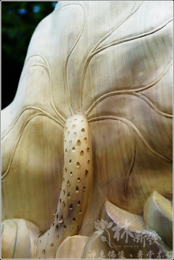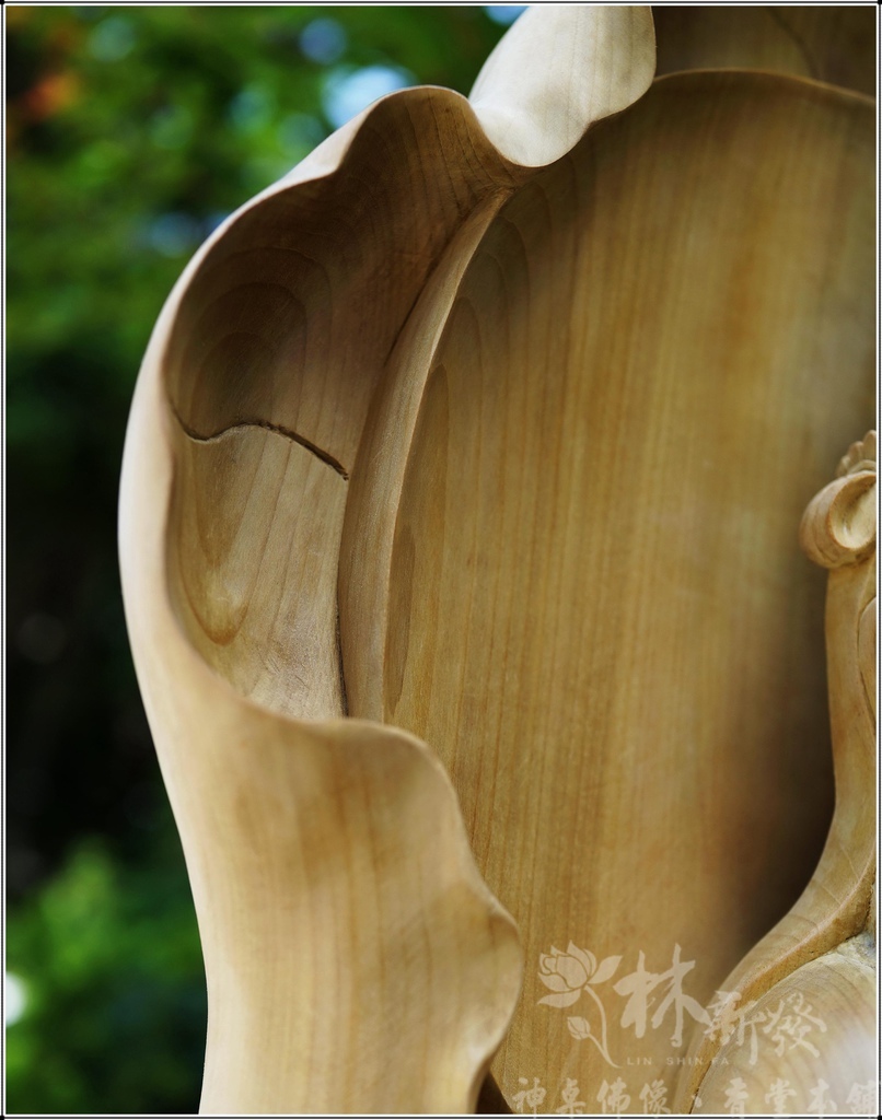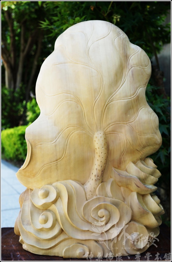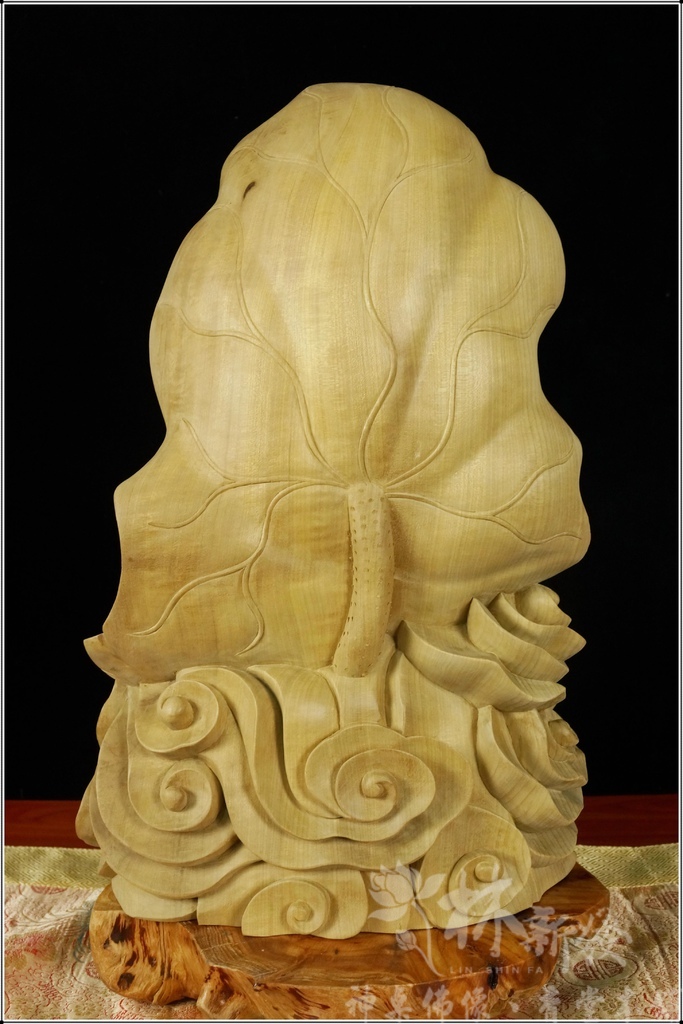 荷緣觀自在。黃楠木原色手工作品,創作尺六、二尺二兩種尺寸。