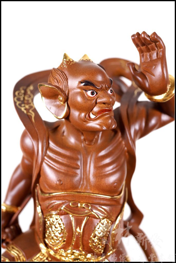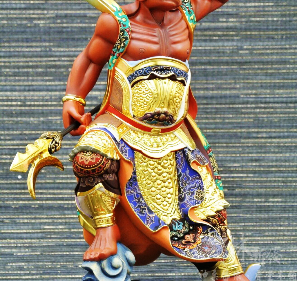 千順護法將軍的神韻非常的到位,同時為了呈現神明的威武體態,阿倫師當初還多開了一個泥塑版做設計的參考,才得以完成如此的作品。