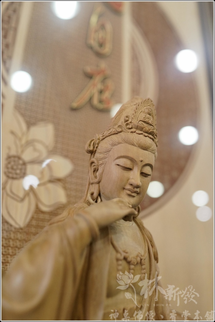 圓滿花舞觀自在作品!倫師以最自然的體態,配合菩薩慈悲的神韻發想創作,新發神藝佛雕師~要讓觀音有著高雅氣質!