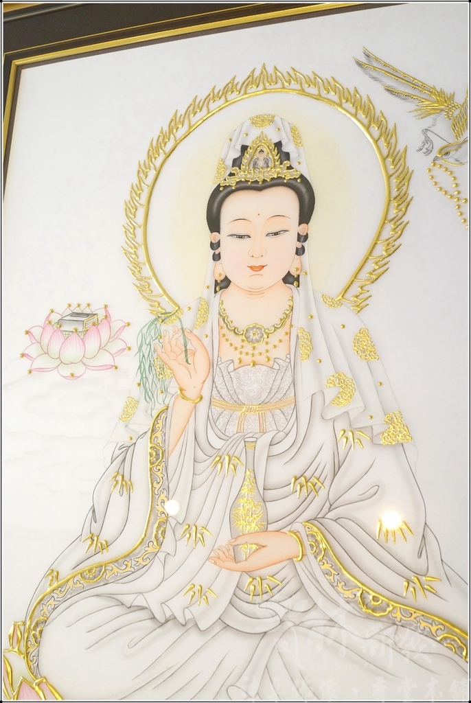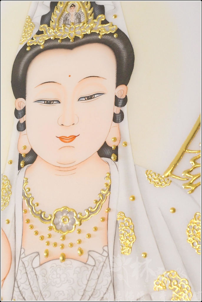 24K金箔金線觀音聯,大家所看到的立體金黃色部份,是我們自家師傳細心以金箔線描繪的~