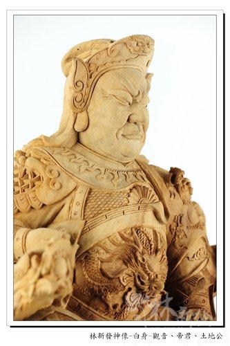帝君作品是用特級香樟細雕而完成~~特選去木心材(代表的是上百年材),原木的天然靈性讓作品更有韻味,也更加莊嚴~