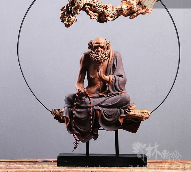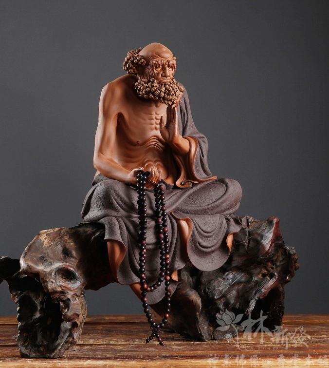作品創意取自達摩祖師禪修禪定。表情平靜淡然,