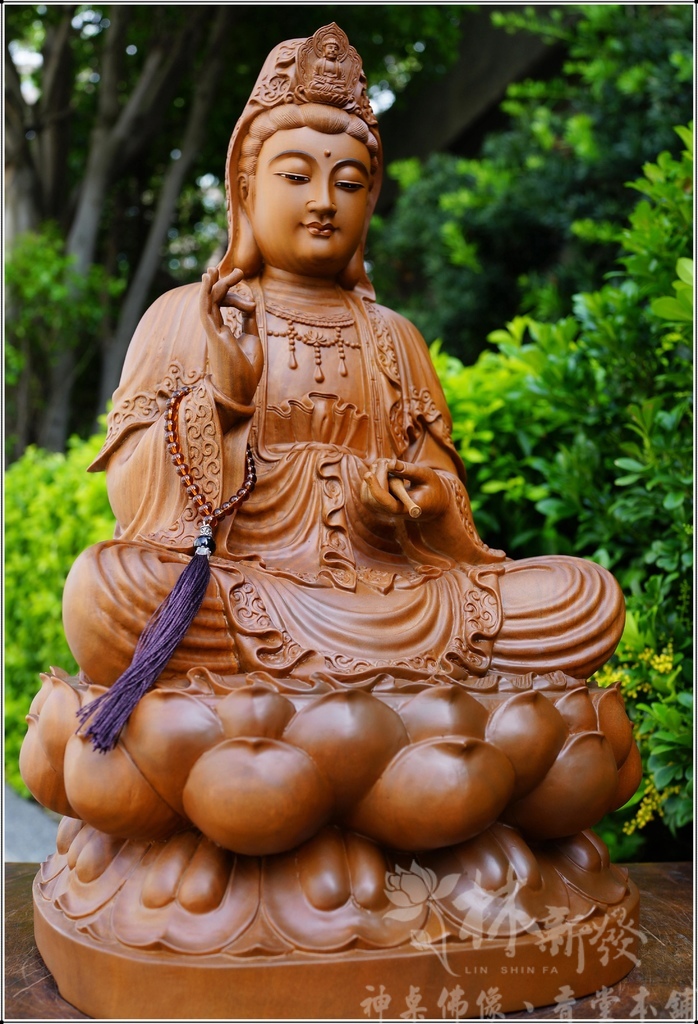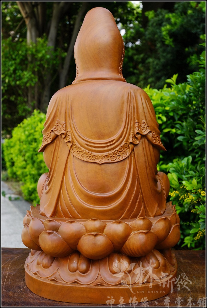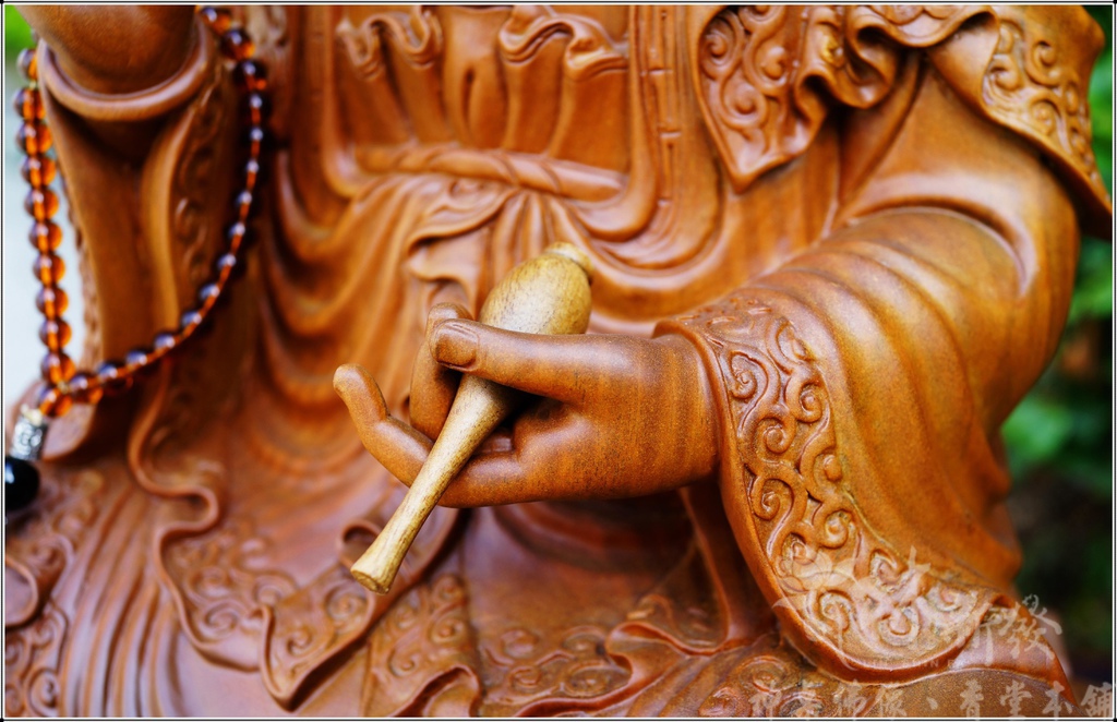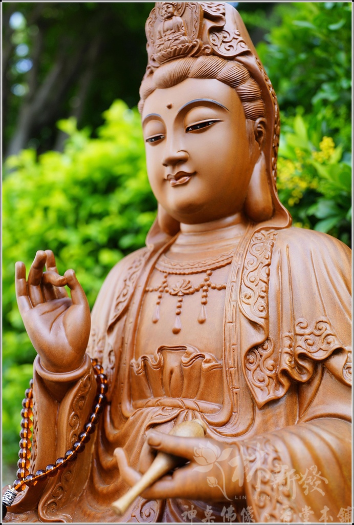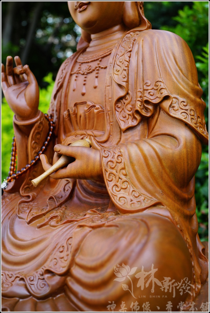 新發神藝-佛法觀音(自然微微笑的神韻/錦衣邊雕刻/綠檀木.梢楠木)