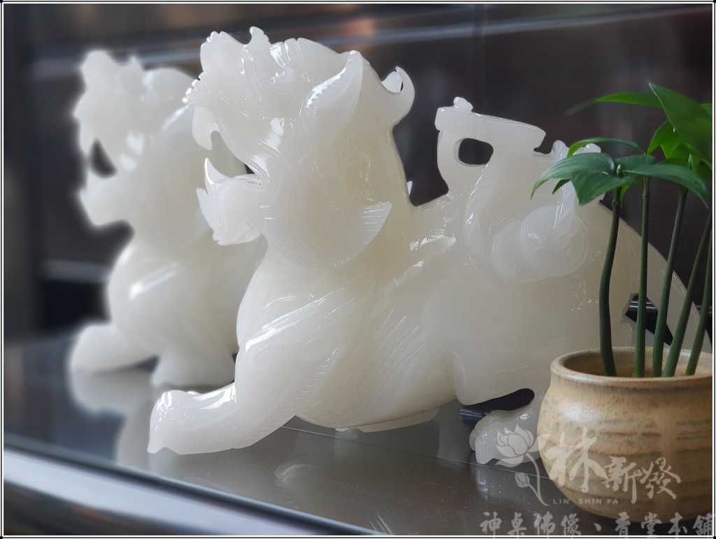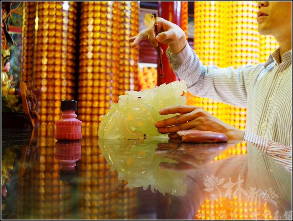 上次還有完成一對白玉作品,這對也開光完成,已經在客戶加帶來滾滾財源囉!