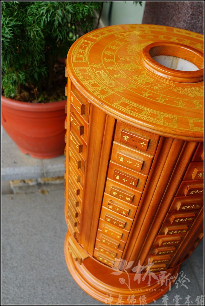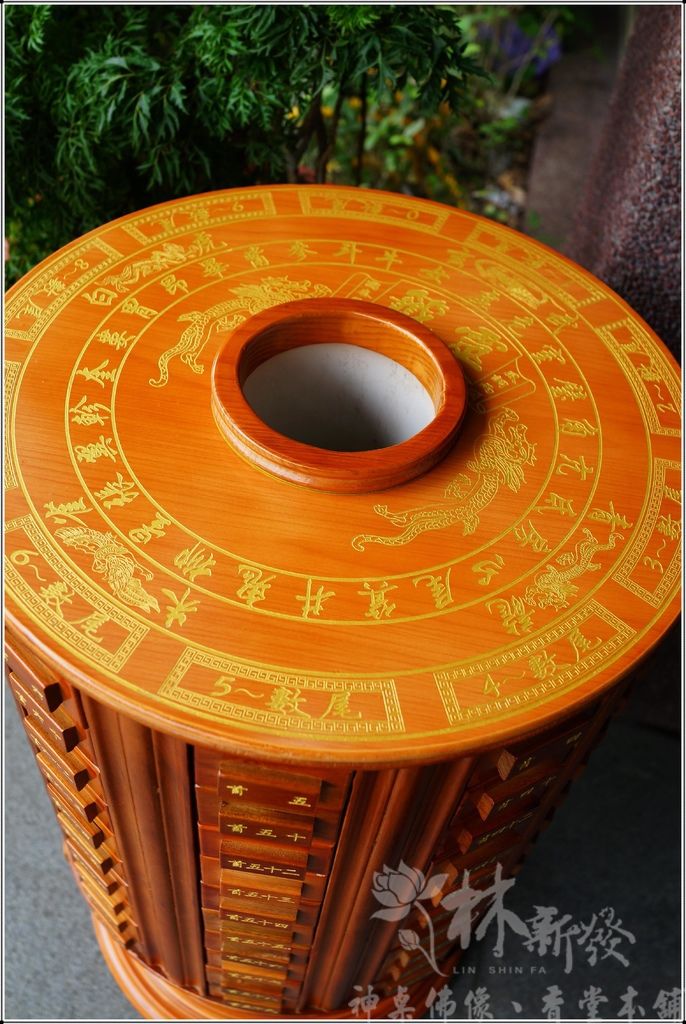新發佛俱-籤詩桶(實木本色.燙金雕刻靈籤100首)