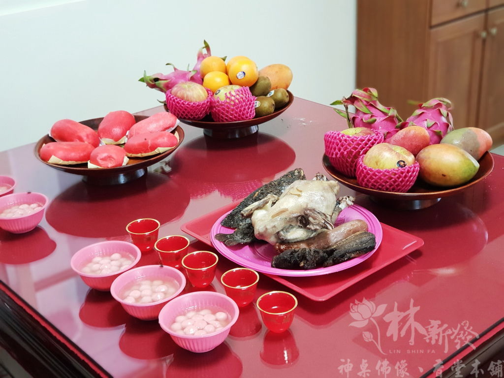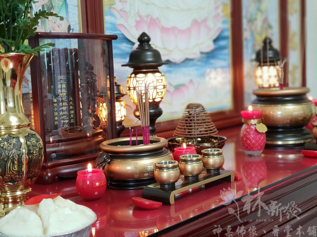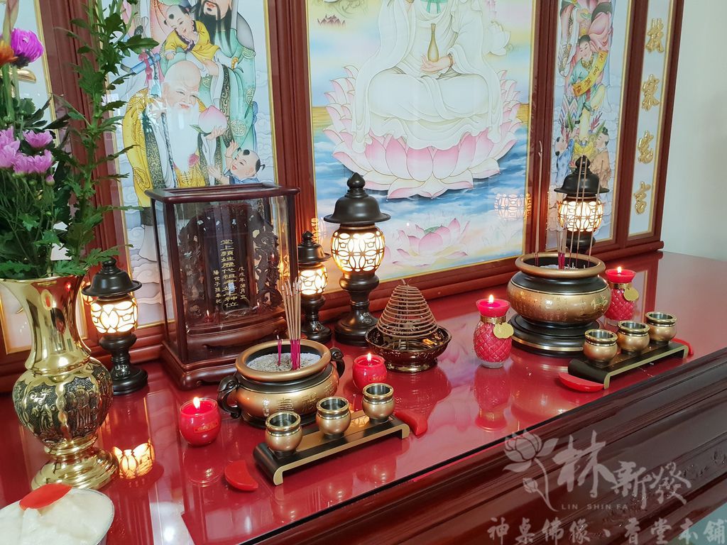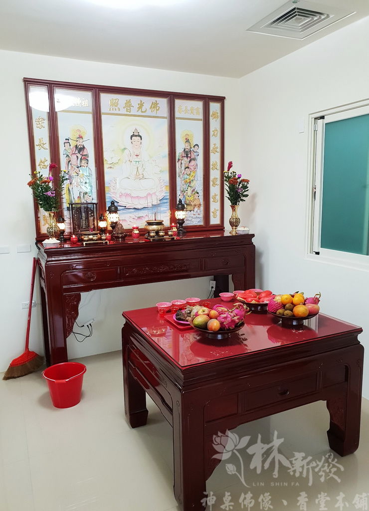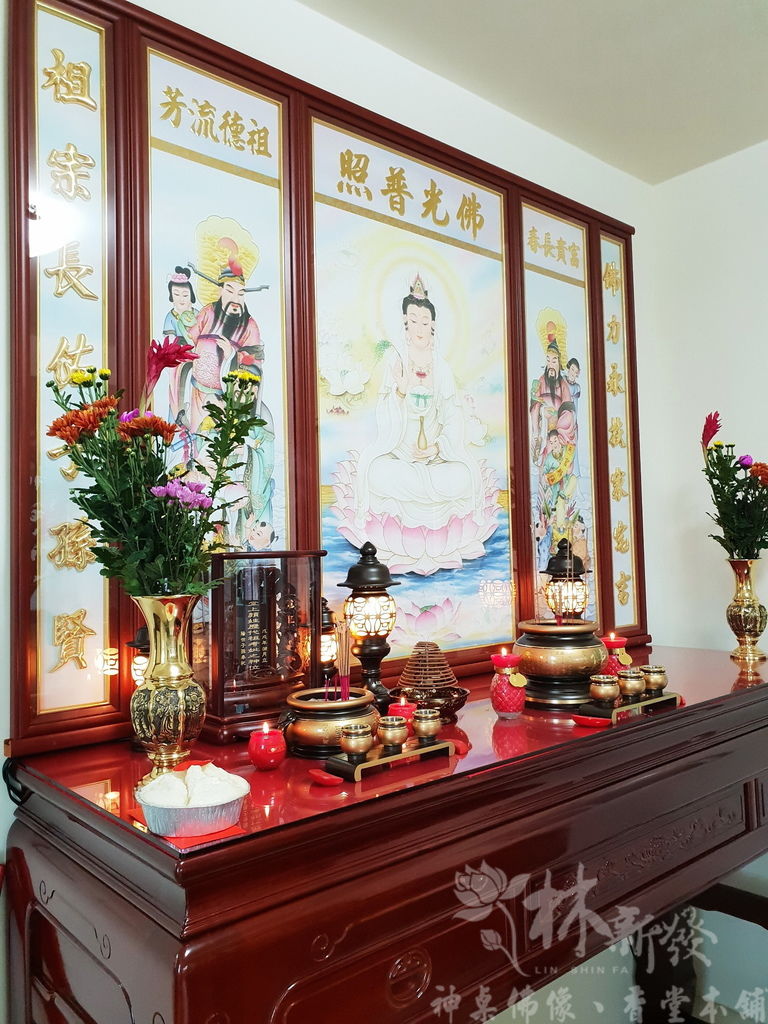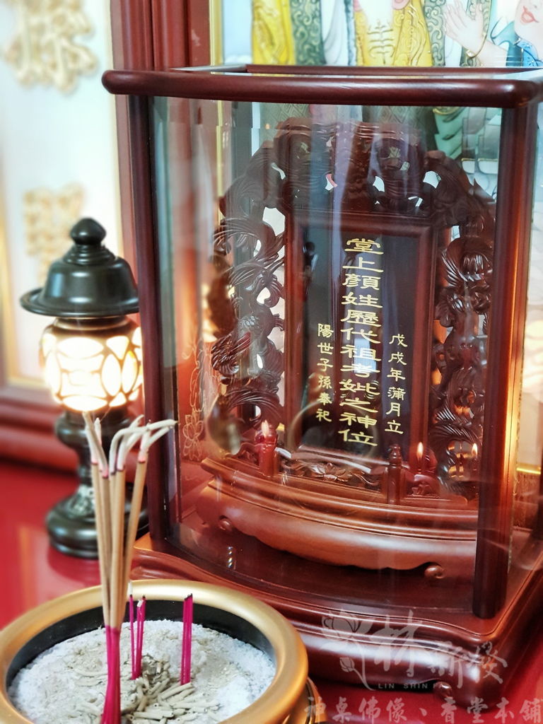 桌面上的是寶華全系列喔!祖先牌位是新發神藝的特製台灣檜木「福祿長壽」祖牌