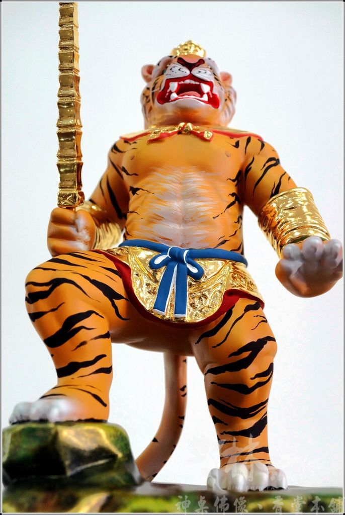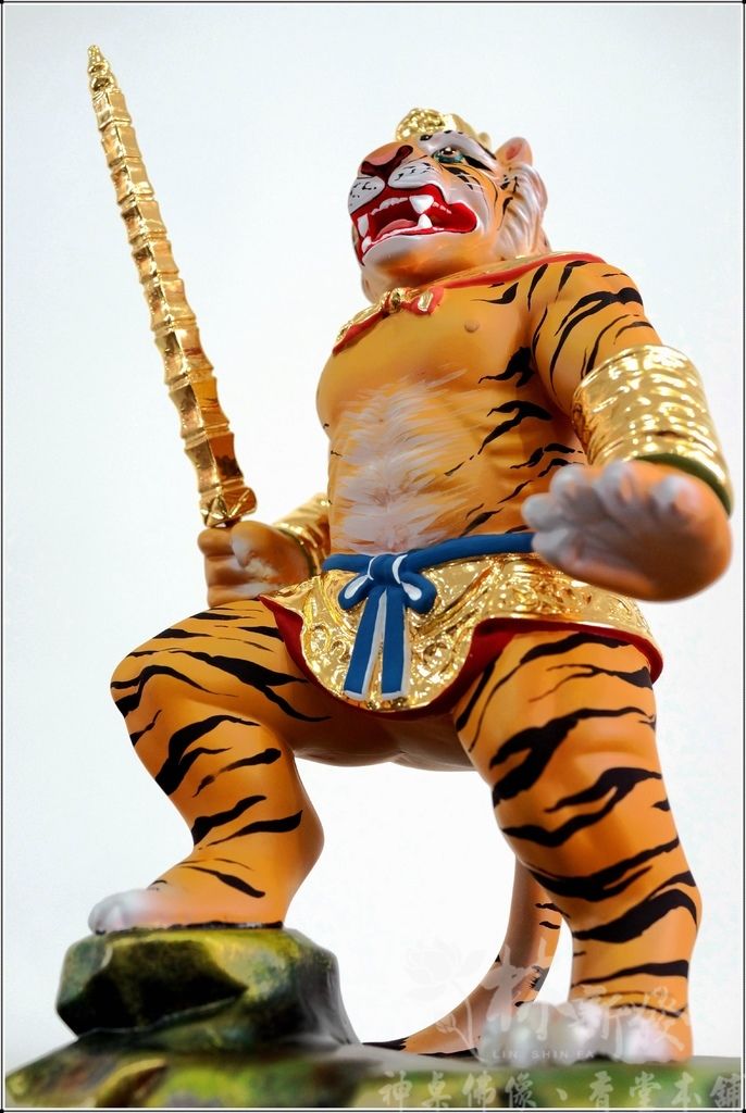 擬人體態的虎將軍,是把虎爺改成站立的樣子喔!在神像雕刻藝術的領域上,只有想不到沒有做不到