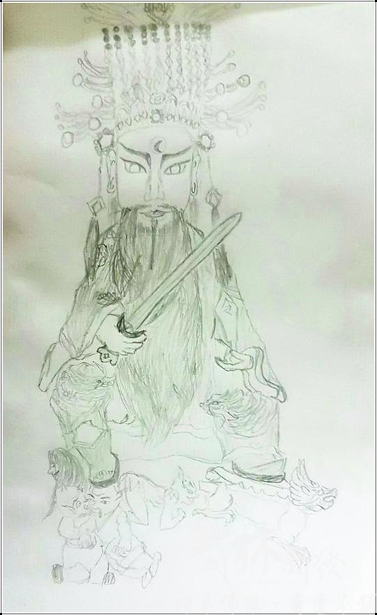 看到手繪草圖^^倫師對閻羅天子的金身有了靈感,最後依神明的旨示完成了作品