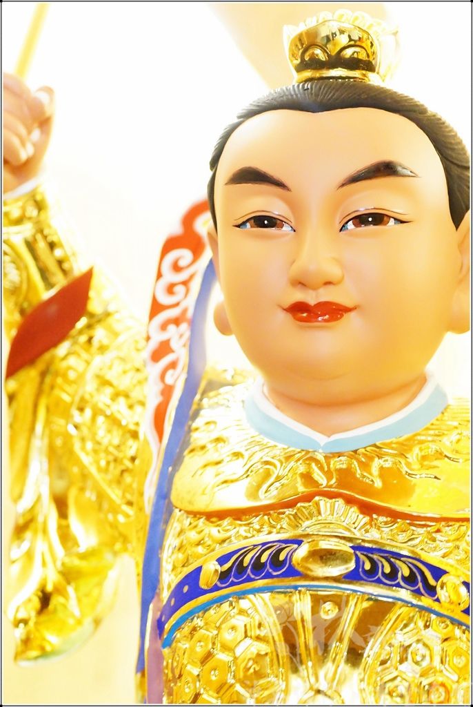 兩件作品的神韻有些許不同,此外一尊是太子槍跟持長方旗,另一尊是金劍跟三角令旗~