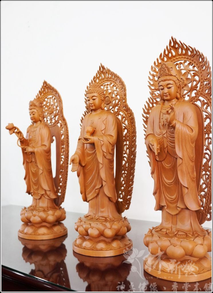新發佛藝-西方三聖(阿彌陀三尊/尺六香樟原色)