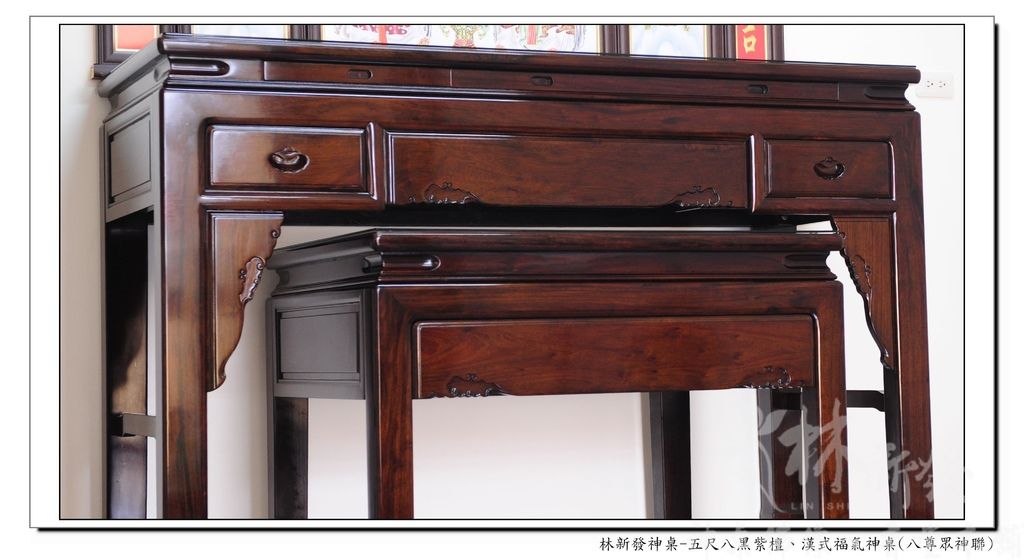 現在買大神桌的人,也都很喜歡這種素雅的新款漢式風格喔!^^嘿嘿~新作品就是很熱銷啊!